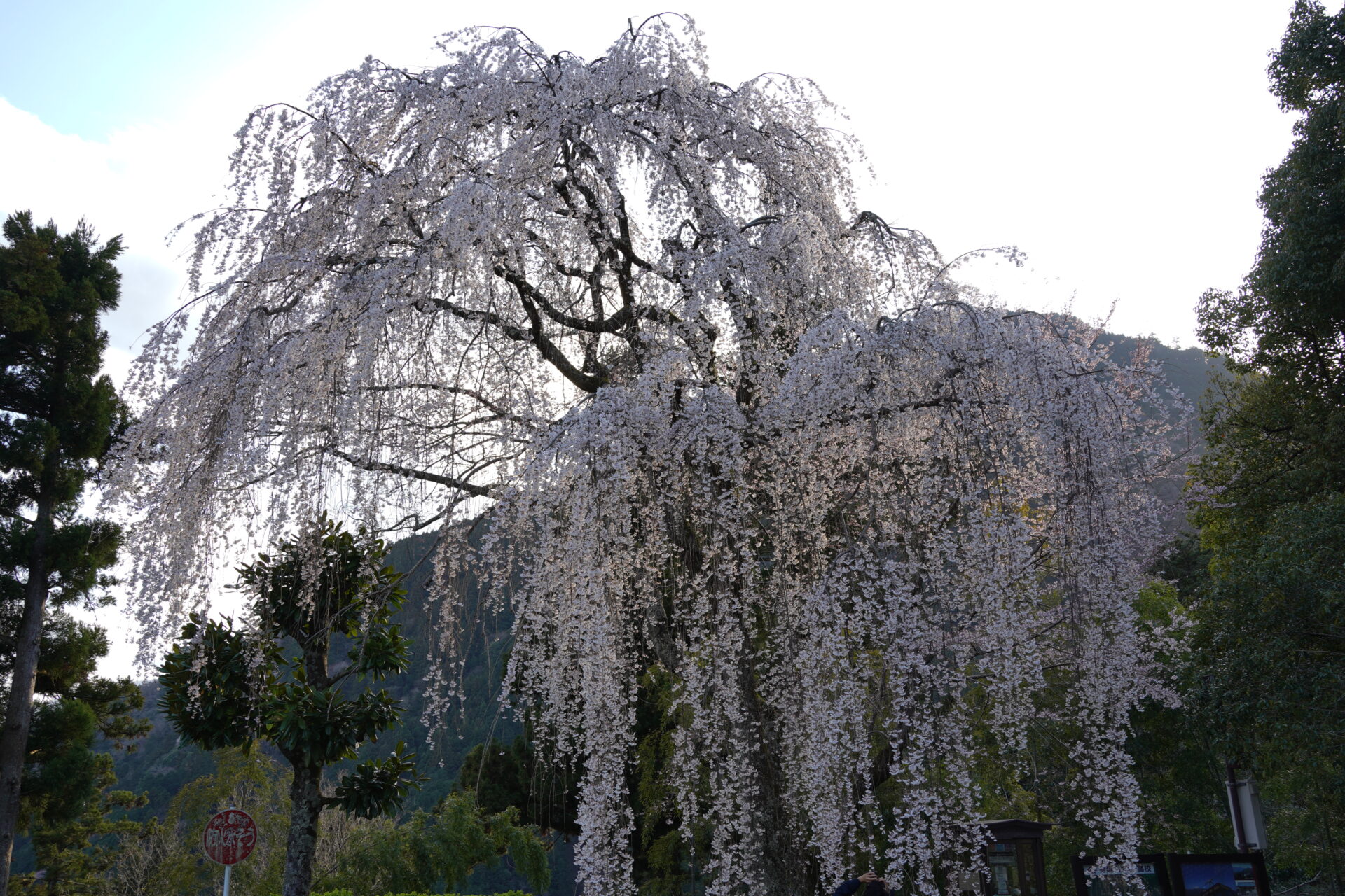 巨木の枝がしなだれ、まるで天から桜の花が舞い降りてくるかのような景観を楽しめるのです。