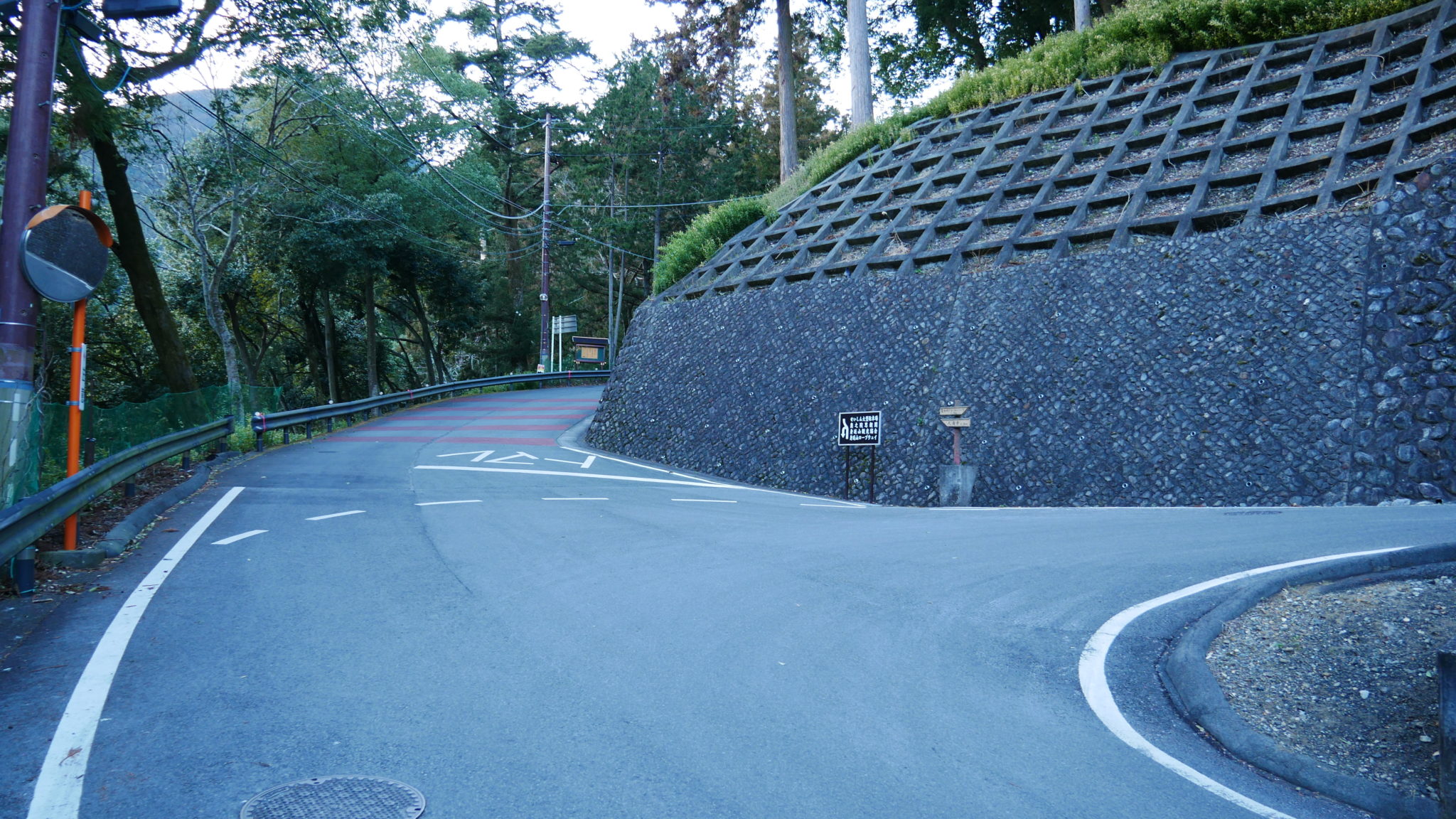 ②途中反対車線に「トマレ」と書かれた三叉路がでてきますので、そのまま直進してください。