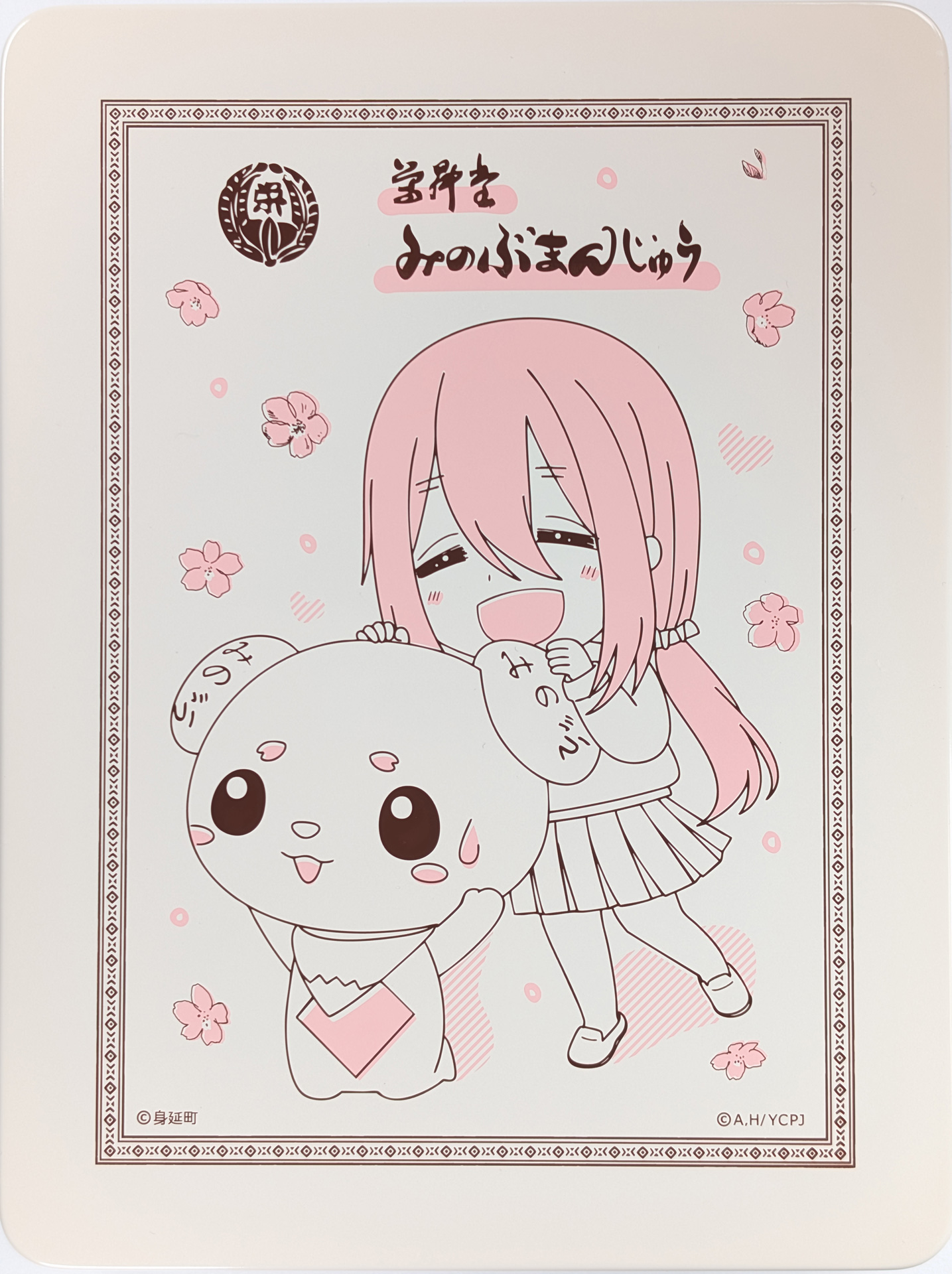 なでしこちゃんと、身延町公式キャラ「みのワン」柄のパッケージ缶入りです!